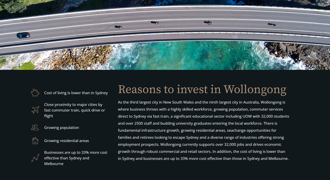 Branding, creative design, website development and video production for a stylish new Wollongong real estate development.