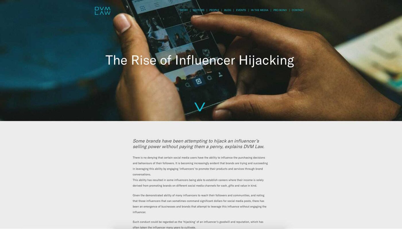 It was important that the website was developed to ensure that it clearly communicated the sectors (arts, media, communications and so on) for which DVM Law provides its legal services.