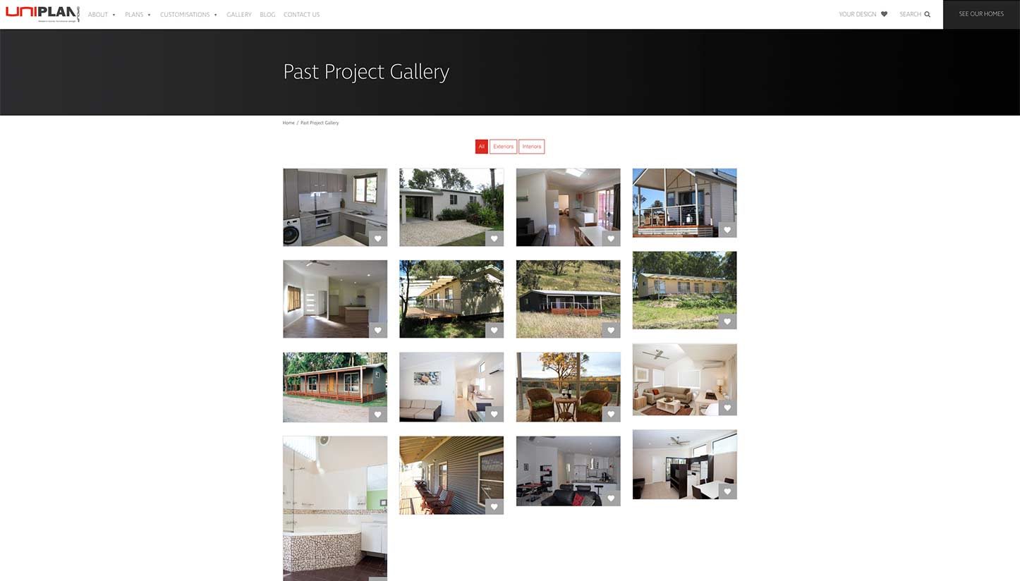 The Your Design board was a unique customisation we provided for Uniplan Group, wherein users can create a mood board of their favourite features throughout the website. Always accessible at the top of the screen (even while scrolling), Your Design’s base functionality allows people to collect their preferred plans, designs, colour schemes and inclusions to create a custom webpage based on their selections.